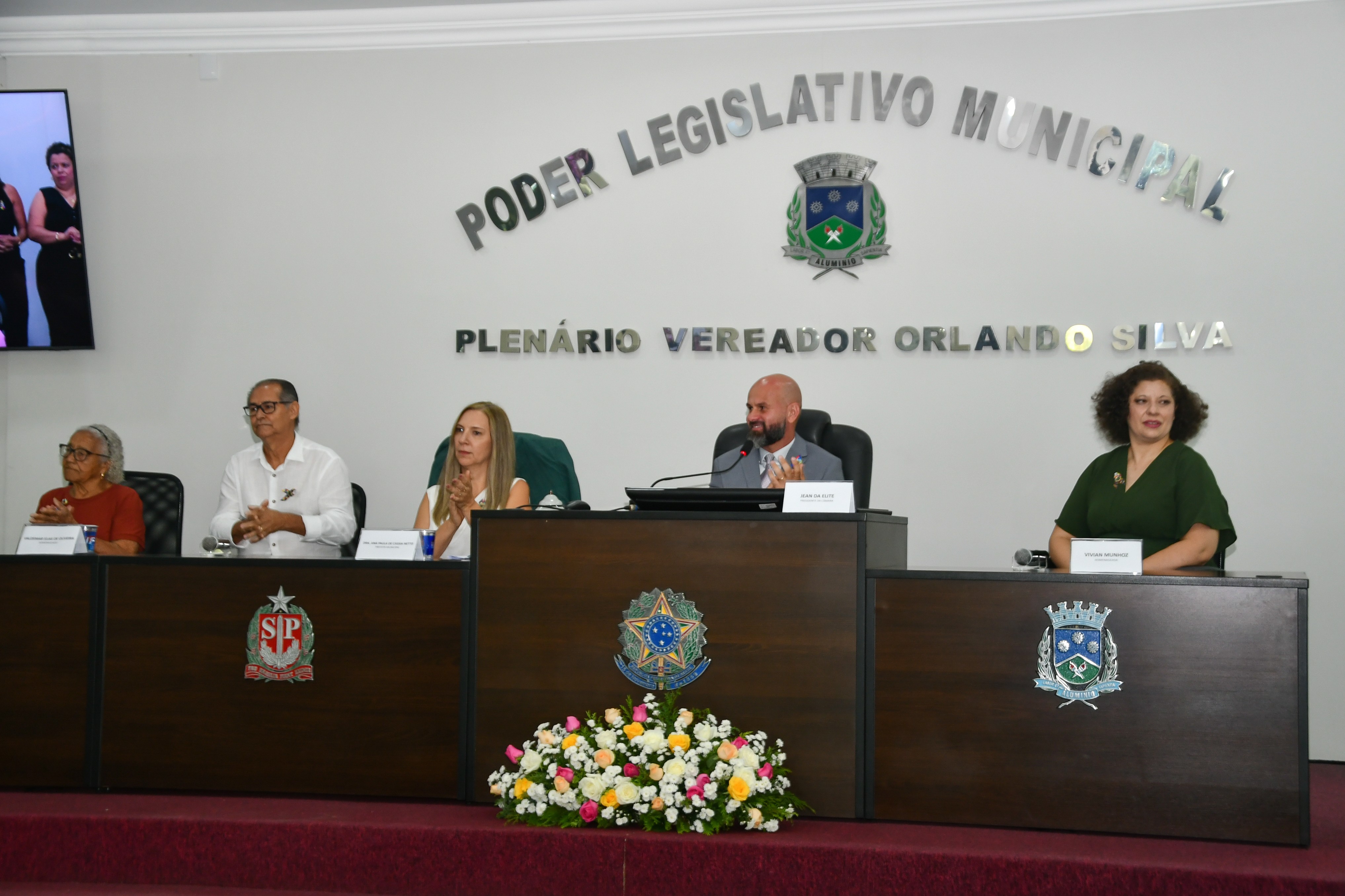 A solenidade contou com a presença da prefeita Dra. Ana Paula de Cassia Netto, do vice-prefeito Dr. Alexandre Amaral, do Presidente da Câmara Jean da Elite e demais vereadores desta Casa, dos familiares dos homenageados e outros ilustres munícipes.