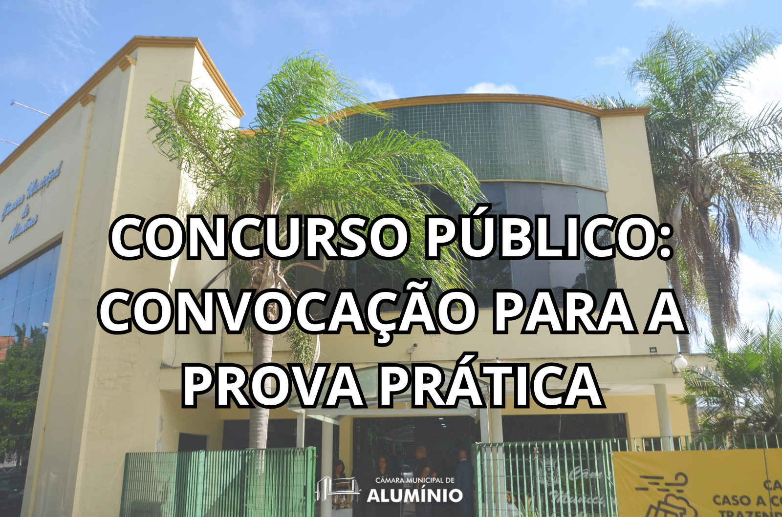 A Câmara Municipal de Alumínio convoca os candidatos inscritos para o cargo de Motorista relacionados no arquivo anexo para prestarem a prova prática, que será realizada no dia 29 de março de 2026, nesta Câmara.