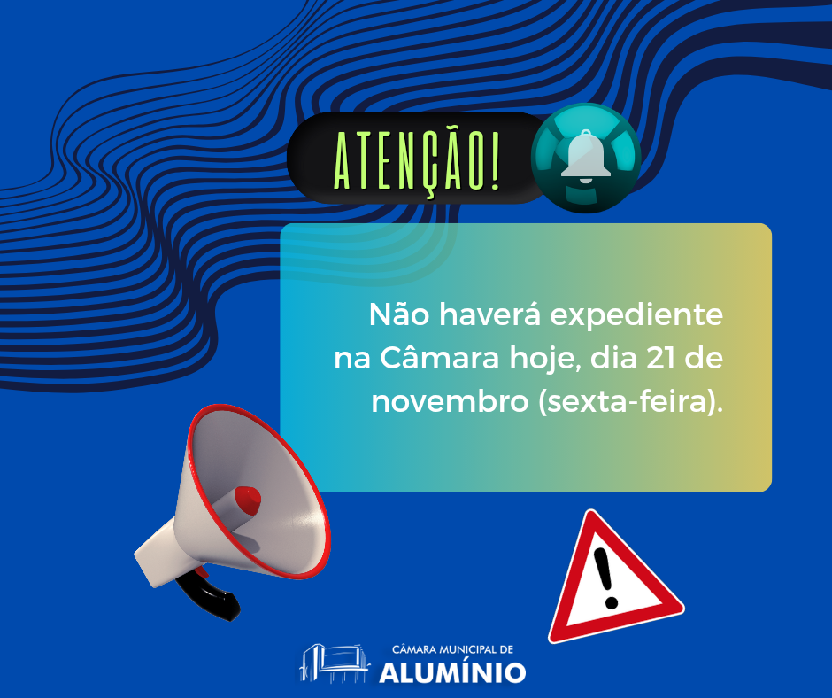 A Câmara Municipal de Alumínio não terá expediente hoje, dia 21 de novembro (sexta-feira).