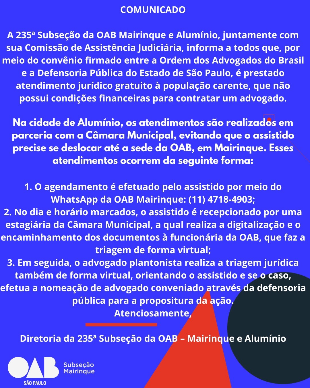 Em cumprimento ao disposto no inciso XIV do Art. 26 da Lei Orgânica do Município, a Câmara de Alumínio abre, a partir...